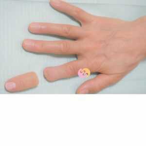 幼少期の事故により右手人差し指の爪部分を失い、長年見た目に悩みを抱えていた方のエピテーゼ製作例です。